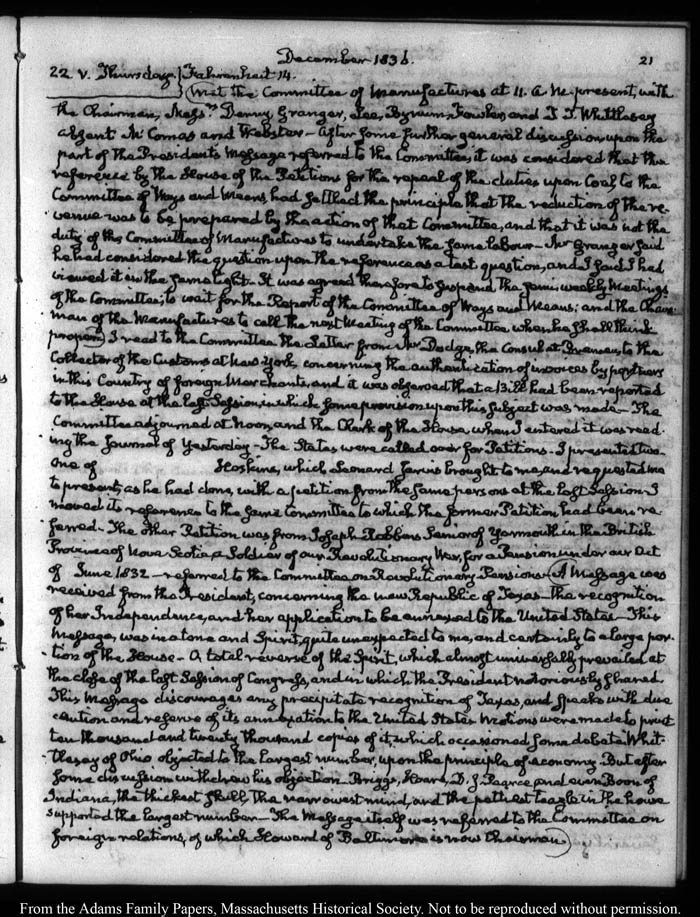 John Quincy Adams diary 41, 5 December 1836 - 4 January 1837, 29 July 1840 - 31 December 1841, page 21