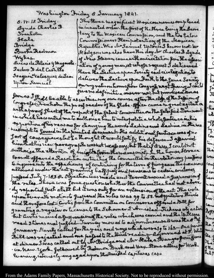View full, authoritative transcriptions with page images of the diaries at John Quincy Adams Digital Diary part of the Primary Source Cooperative at the MHS.