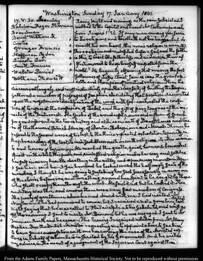 Washington Sunday 17. January 1841
