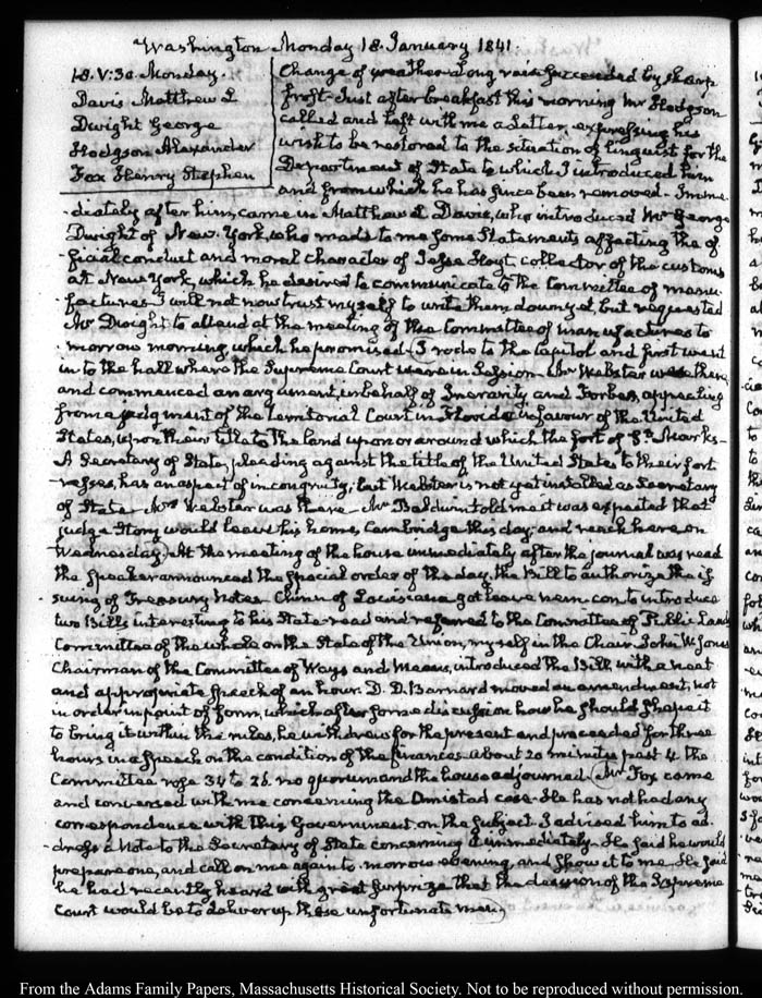 View full, authoritative transcriptions with page images of the diaries at John Quincy Adams Digital Diary part of the Primary Source Cooperative at the MHS.