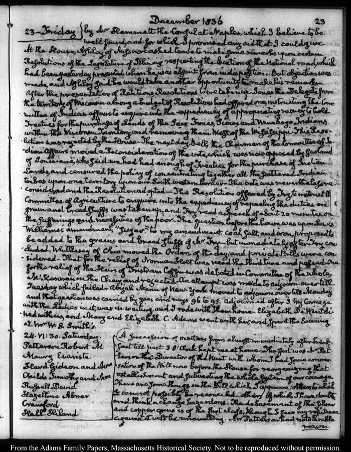 John Quincy Adams diary 41, 5 December 1836 - 4 January 1837, 29 July 1840 - 31 December 1841, page 23