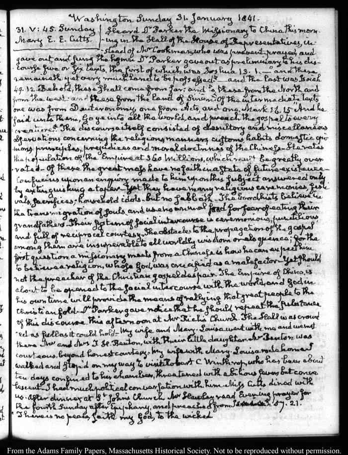 View full, authoritative transcriptions with page images of the diaries at John Quincy Adams Digital Diary part of the Primary Source Cooperative at the MHS.