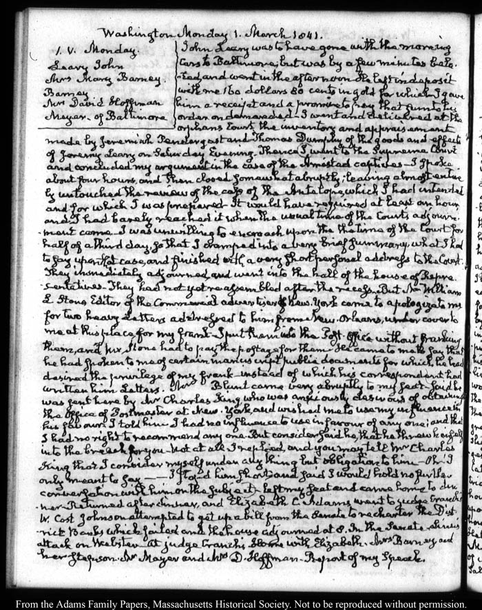 View full, authoritative transcriptions with page images of the diaries at John Quincy Adams Digital Diary part of the Primary Source Cooperative at the MHS.