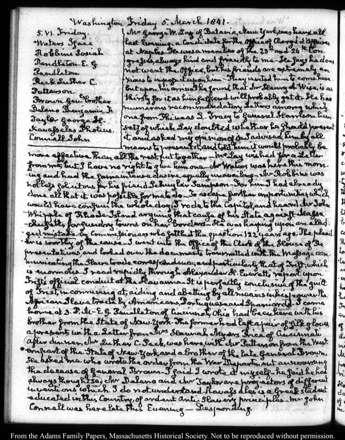 View full, authoritative transcriptions with page images of the diaries at John Quincy Adams Digital Diary part of the Primary Source Cooperative at the MHS.