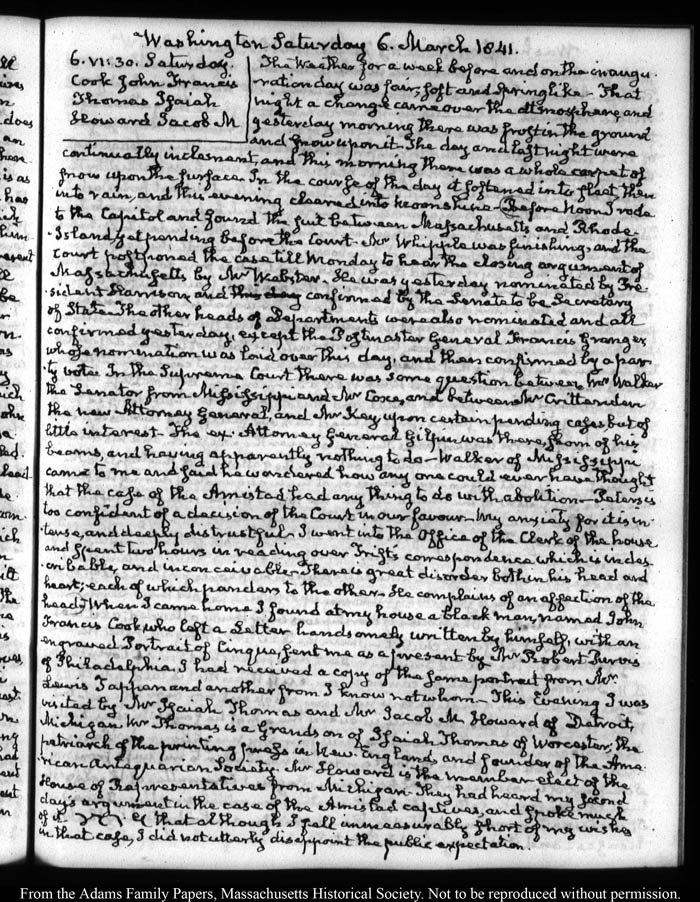 View full, authoritative transcriptions with page images of the diaries at John Quincy Adams Digital Diary part of the Primary Source Cooperative at the MHS.