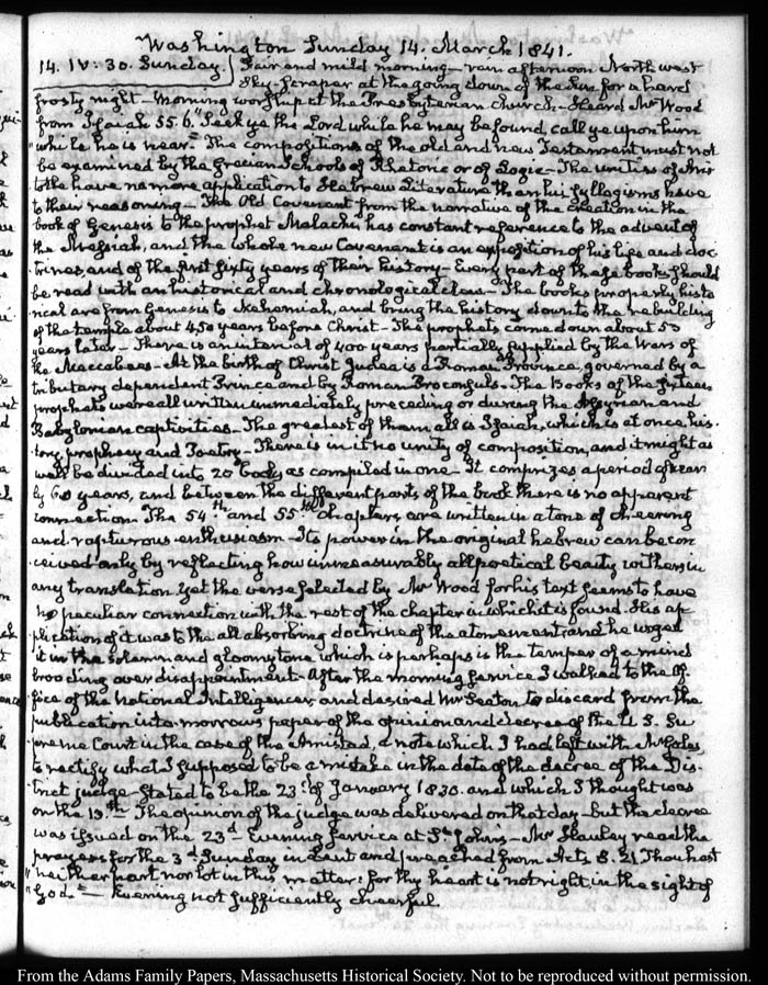 View full, authoritative transcriptions with page images of the diaries at John Quincy Adams Digital Diary part of the Primary Source Cooperative at the MHS.