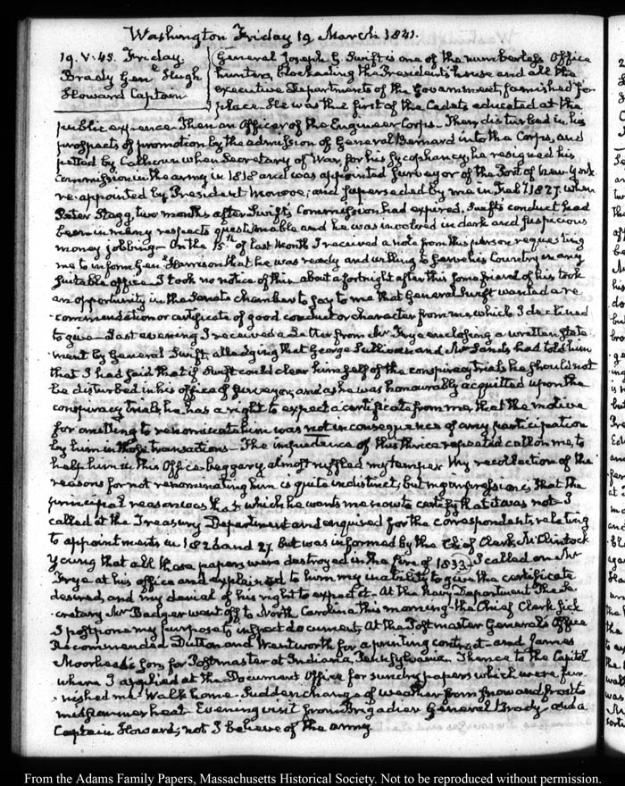View full, authoritative transcriptions with page images of the diaries at John Quincy Adams Digital Diary part of the Primary Source Cooperative at the MHS.