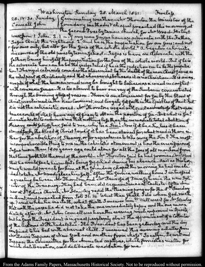 View full, authoritative transcriptions with page images of the diaries at John Quincy Adams Digital Diary part of the Primary Source Cooperative at the MHS.