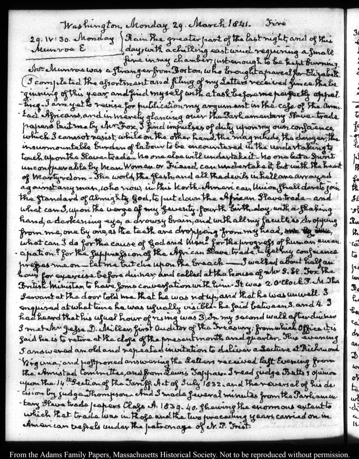 View full, authoritative transcriptions with page images of the diaries at John Quincy Adams Digital Diary part of the Primary Source Cooperative at the MHS.