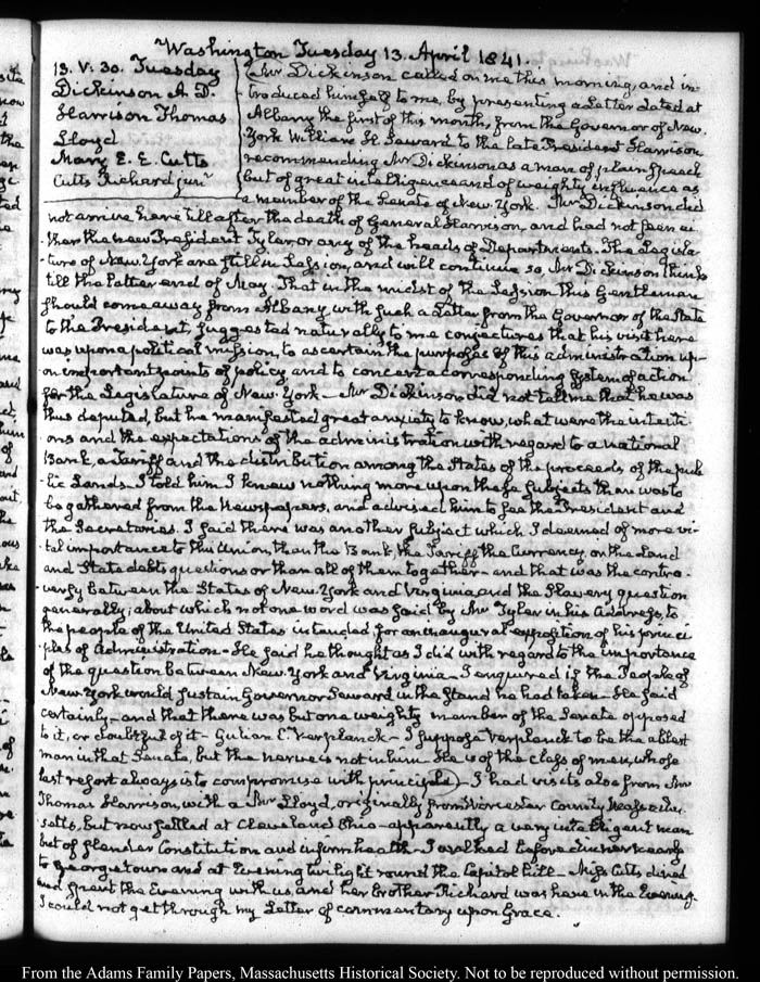 View full, authoritative transcriptions with page images of the diaries at John Quincy Adams Digital Diary part of the Primary Source Cooperative at the MHS.