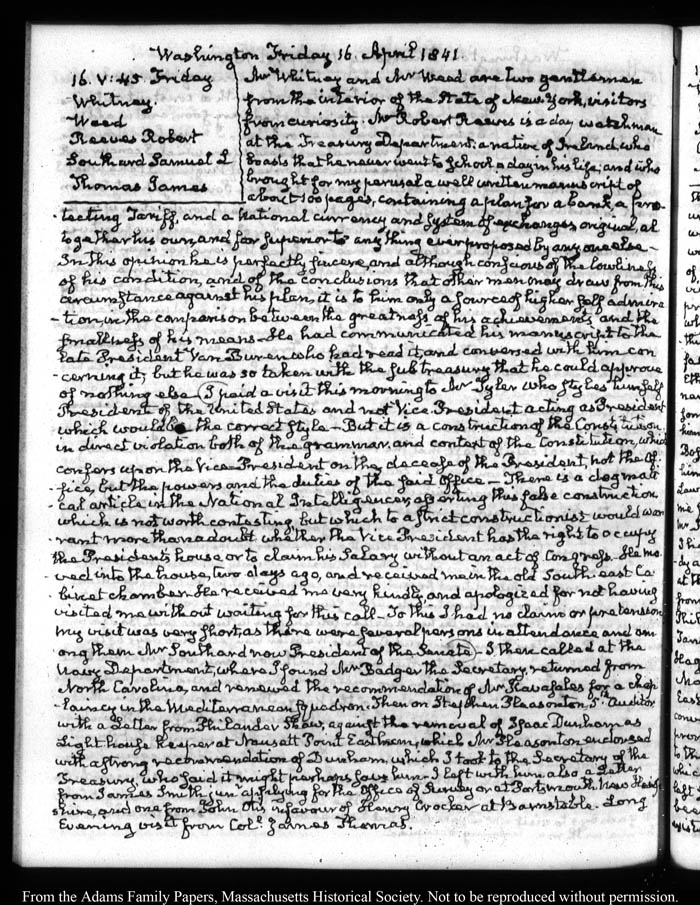 This is our legacy JQA diaries website and allows researchers to view the physical diaries page-by-page.