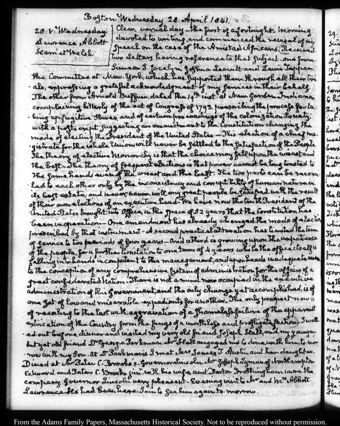 View full, authoritative transcriptions with page images of the diaries at John Quincy Adams Digital Diary part of the Primary Source Cooperative at the MHS.
