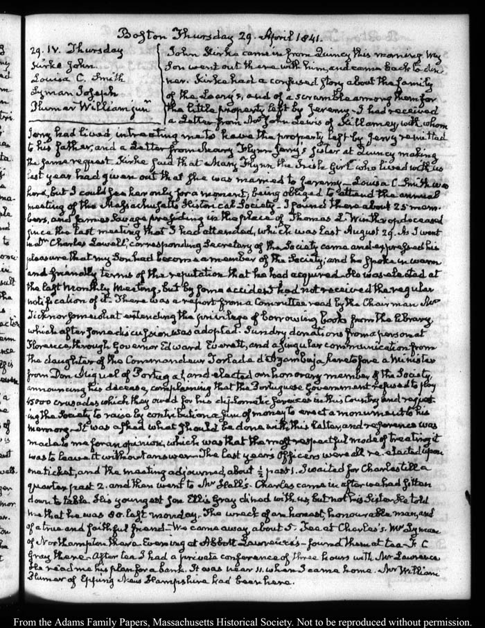 View full, authoritative transcriptions with page images of the diaries at John Quincy Adams Digital Diary part of the Primary Source Cooperative at the MHS.