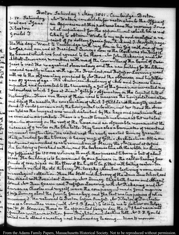 Boston Saturday 1. May 1841. Cambridge - Boston