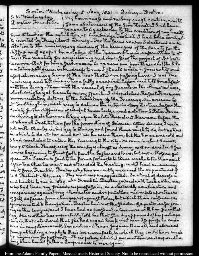Boston Wednesday 5. May 1841. Quincy - Boston