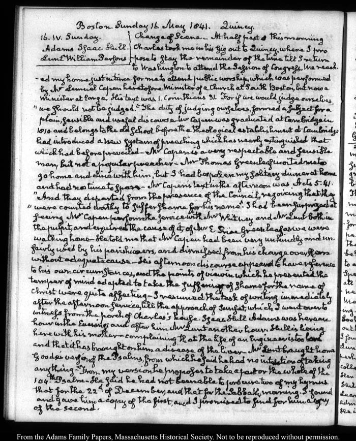 View full, authoritative transcriptions with page images of the diaries at John Quincy Adams Digital Diary part of the Primary Source Cooperative at the MHS.