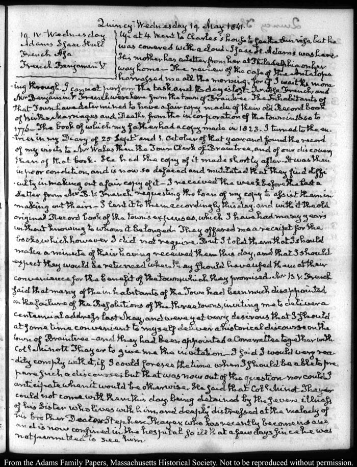 View full, authoritative transcriptions with page images of the diaries at John Quincy Adams Digital Diary part of the Primary Source Cooperative at the MHS.