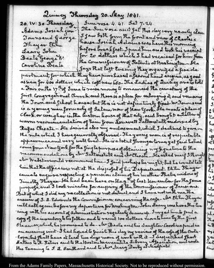 View full, authoritative transcriptions with page images of the diaries at John Quincy Adams Digital Diary part of the Primary Source Cooperative at the MHS.