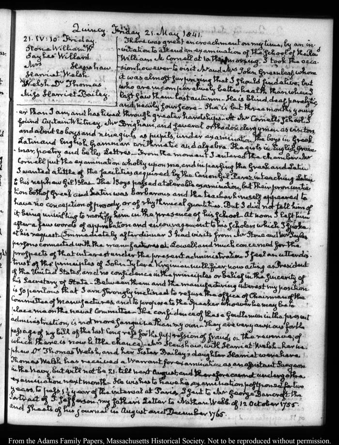 View full, authoritative transcriptions with page images of the diaries at John Quincy Adams Digital Diary part of the Primary Source Cooperative at the MHS.