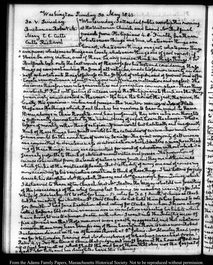 View full, authoritative transcriptions with page images of the diaries at John Quincy Adams Digital Diary part of the Primary Source Cooperative at the MHS.