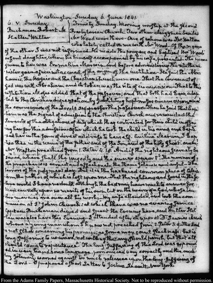 View full, authoritative transcriptions with page images of the diaries at John Quincy Adams Digital Diary part of the Primary Source Cooperative at the MHS.
