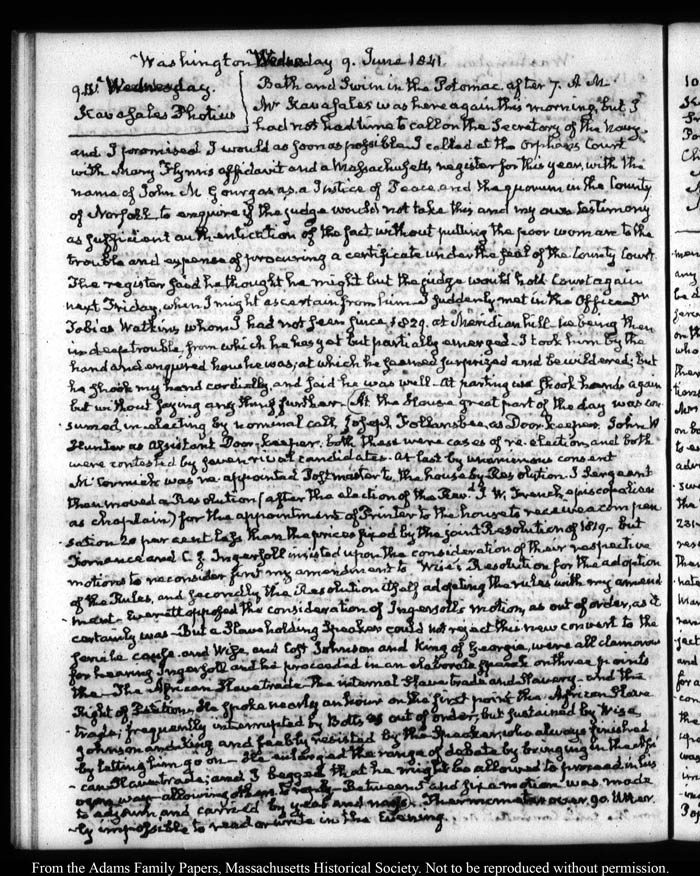 View full, authoritative transcriptions with page images of the diaries at John Quincy Adams Digital Diary part of the Primary Source Cooperative at the MHS.