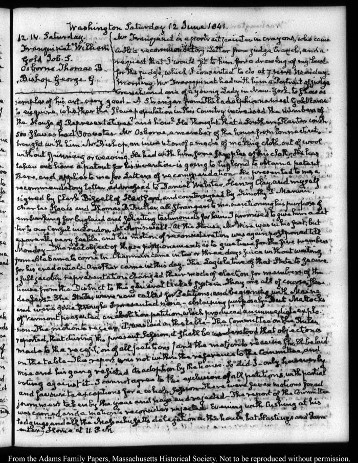 View full, authoritative transcriptions with page images of the diaries at John Quincy Adams Digital Diary part of the Primary Source Cooperative at the MHS.