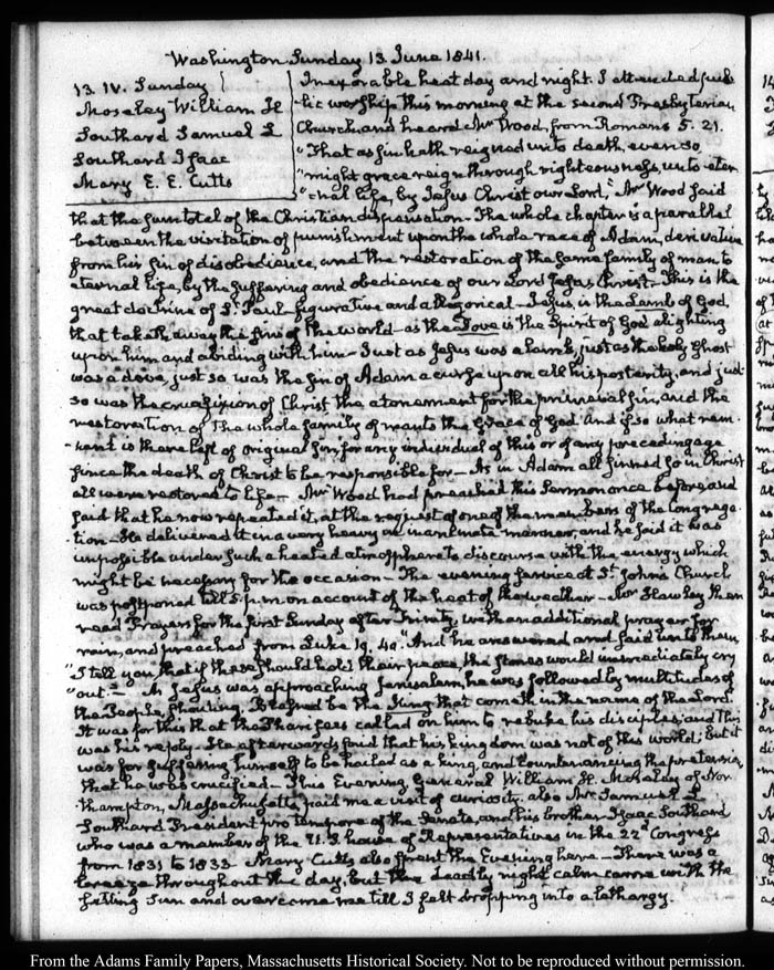 View full, authoritative transcriptions with page images of the diaries at John Quincy Adams Digital Diary part of the Primary Source Cooperative at the MHS.