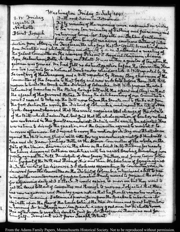 View full, authoritative transcriptions with page images of the diaries at John Quincy Adams Digital Diary part of the Primary Source Cooperative at the MHS.