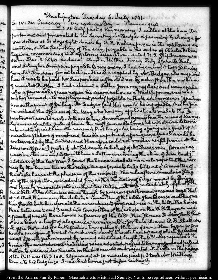 View full, authoritative transcriptions with page images of the diaries at John Quincy Adams Digital Diary part of the Primary Source Cooperative at the MHS.
