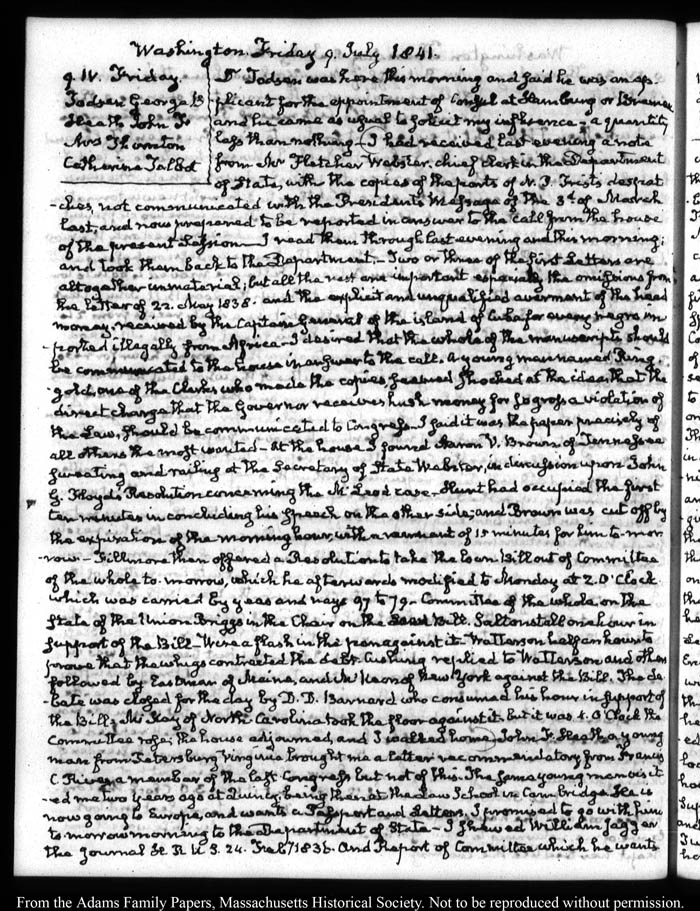 View full, authoritative transcriptions with page images of the diaries at John Quincy Adams Digital Diary part of the Primary Source Cooperative at the MHS.