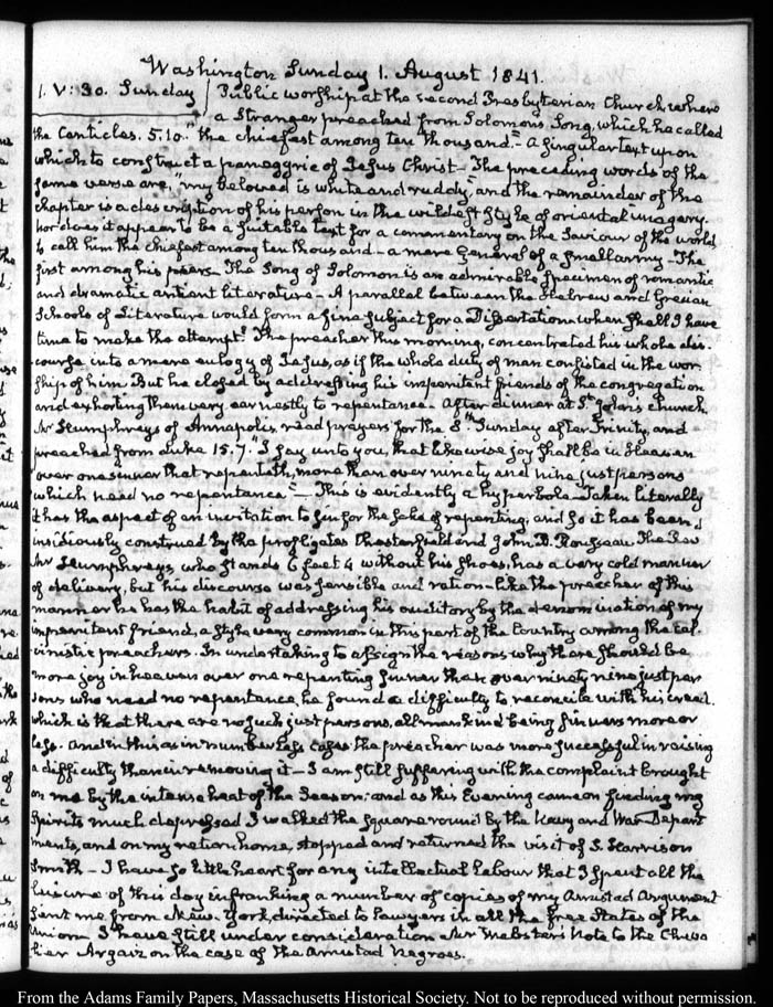 View full, authoritative transcriptions with page images of the diaries at John Quincy Adams Digital Diary part of the Primary Source Cooperative at the MHS.