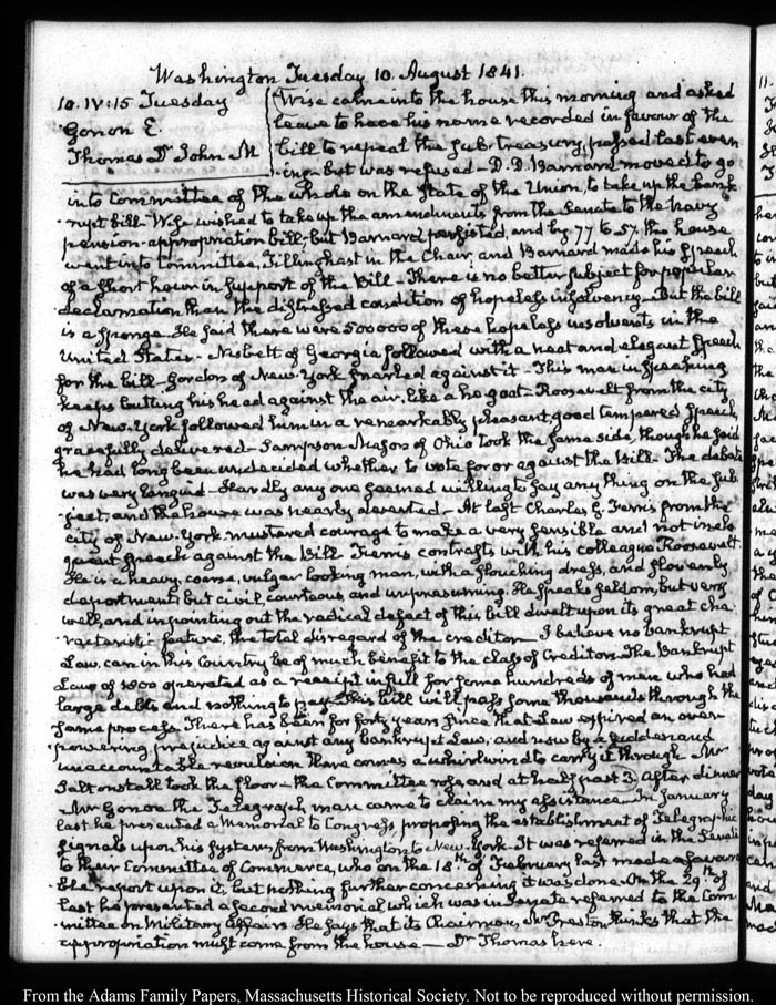 Washington. Tuesday 10 August 1841.