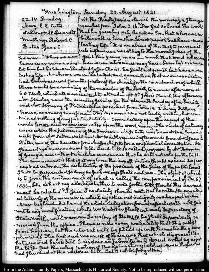 View full, authoritative transcriptions with page images of the diaries at John Quincy Adams Digital Diary part of the Primary Source Cooperative at the MHS.