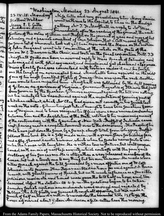 View full, authoritative transcriptions with page images of the diaries at John Quincy Adams Digital Diary part of the Primary Source Cooperative at the MHS.