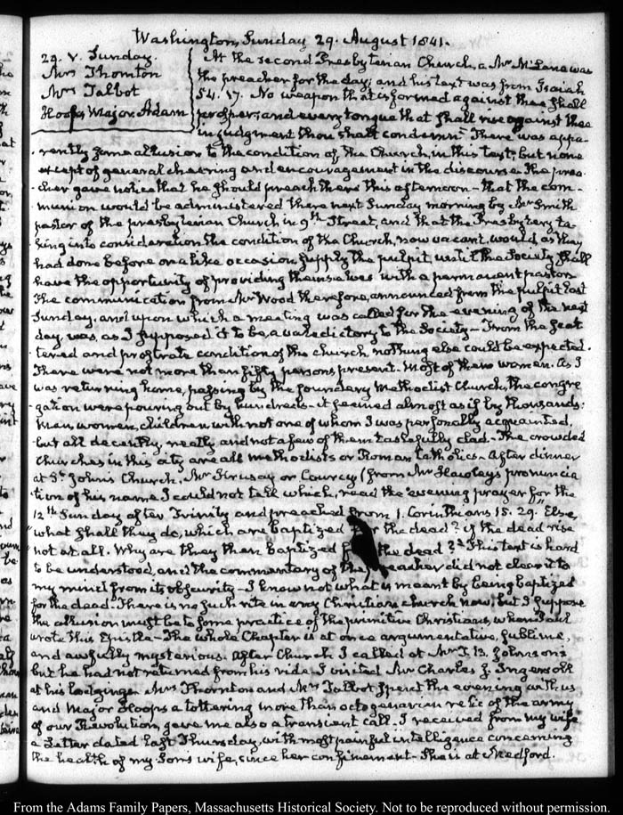 View full, authoritative transcriptions with page images of the diaries at John Quincy Adams Digital Diary part of the Primary Source Cooperative at the MHS.