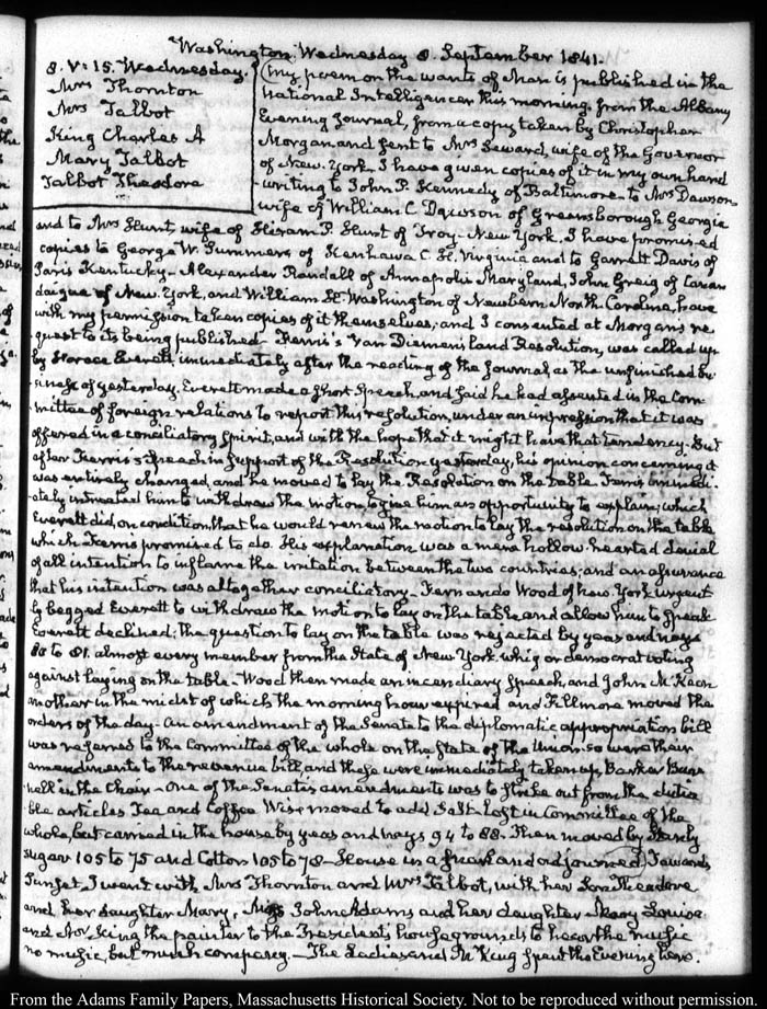 Washington. Wednesday 8 September 1841.