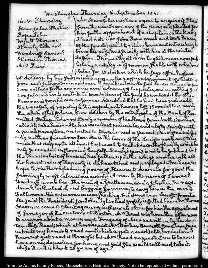 View full, authoritative transcriptions with page images of the diaries at John Quincy Adams Digital Diary part of the Primary Source Cooperative at the MHS.