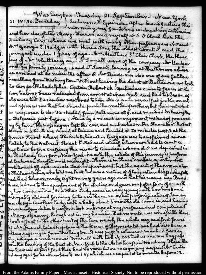 View full, authoritative transcriptions with page images of the diaries at John Quincy Adams Digital Diary part of the Primary Source Cooperative at the MHS.