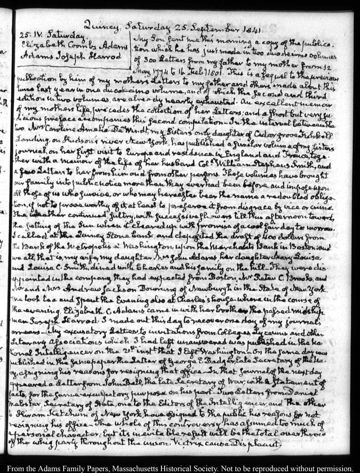 View full, authoritative transcriptions with page images of the diaries at John Quincy Adams Digital Diary part of the Primary Source Cooperative at the MHS.