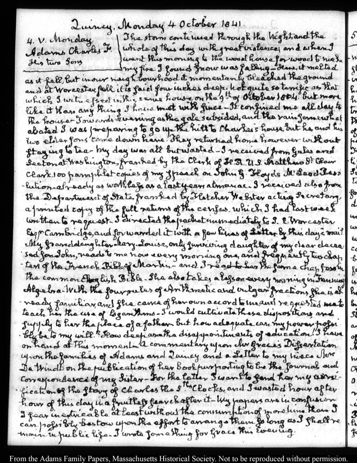 View full, authoritative transcriptions with page images of the diaries at John Quincy Adams Digital Diary part of the Primary Source Cooperative at the MHS.