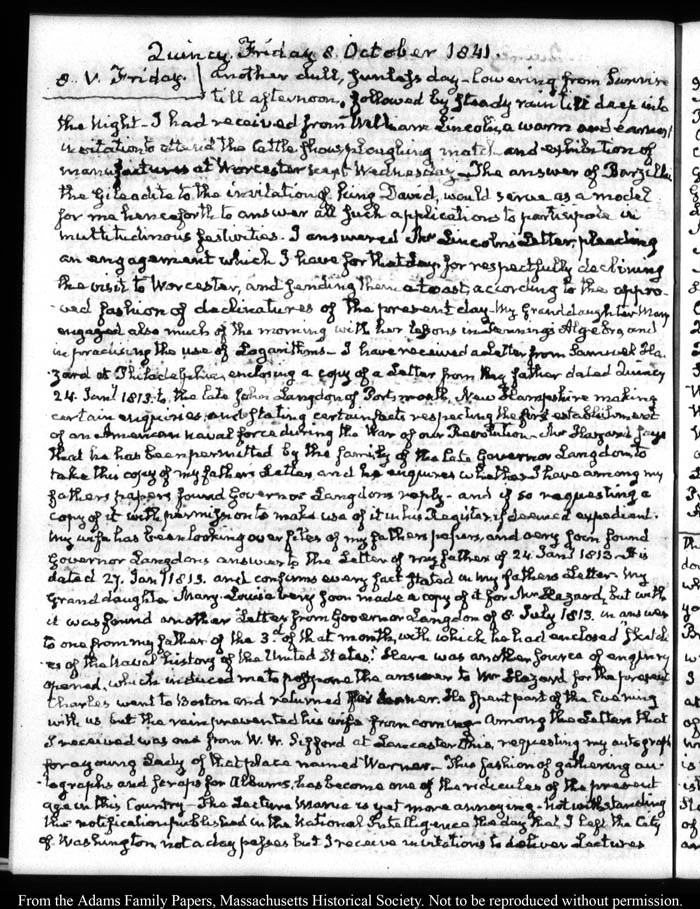 View full, authoritative transcriptions with page images of the diaries at John Quincy Adams Digital Diary part of the Primary Source Cooperative at the MHS.