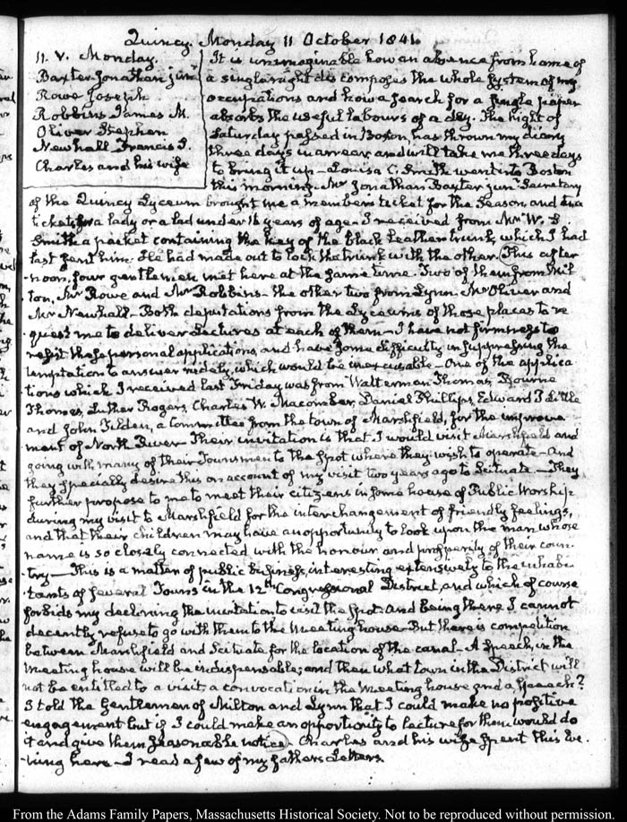 View full, authoritative transcriptions with page images of the diaries at John Quincy Adams Digital Diary part of the Primary Source Cooperative at the MHS.