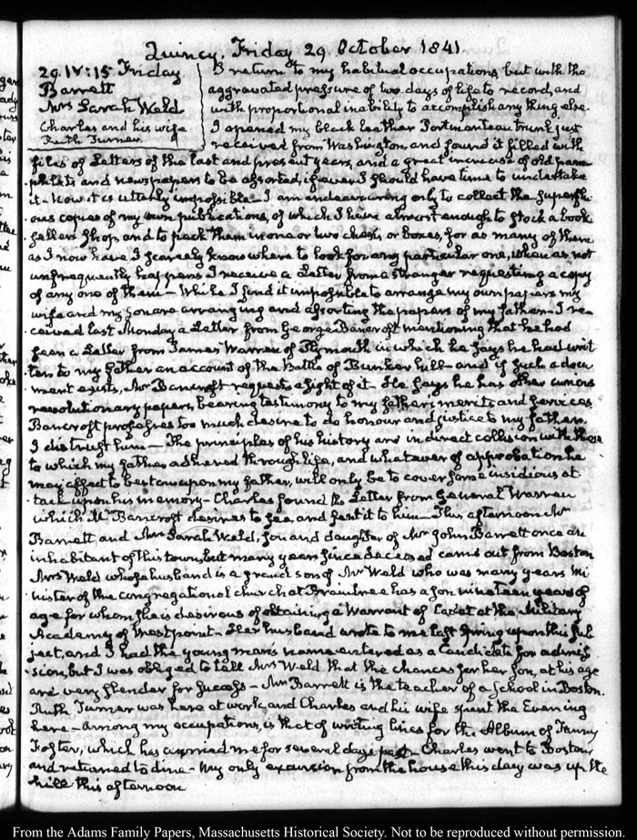 View full, authoritative transcriptions with page images of the diaries at John Quincy Adams Digital Diary part of the Primary Source Cooperative at the MHS.