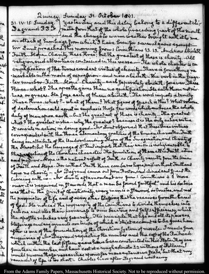 View full, authoritative transcriptions with page images of the diaries at John Quincy Adams Digital Diary part of the Primary Source Cooperative at the MHS.