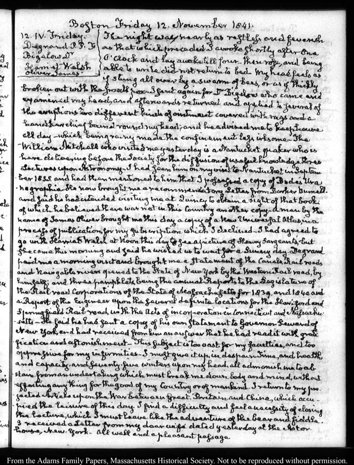 View full, authoritative transcriptions with page images of the diaries at John Quincy Adams Digital Diary part of the Primary Source Cooperative at the MHS.