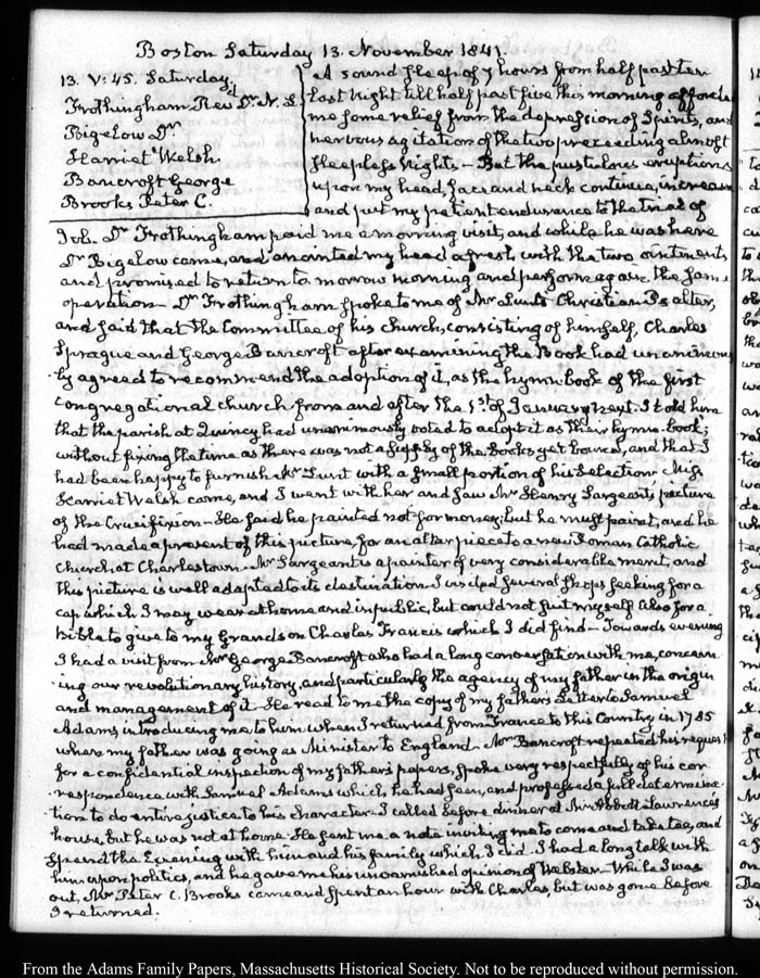 View full, authoritative transcriptions with page images of the diaries at John Quincy Adams Digital Diary part of the Primary Source Cooperative at the MHS.