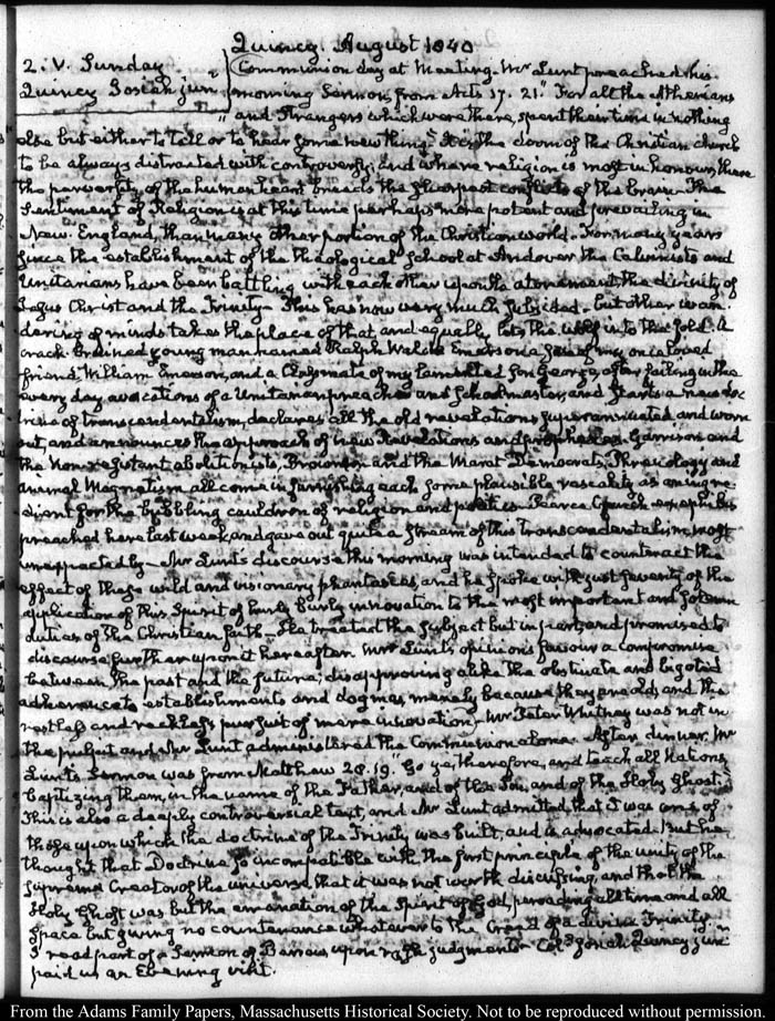 View full, authoritative transcriptions with page images of the diaries at John Quincy Adams Digital Diary part of the Primary Source Cooperative at the MHS.