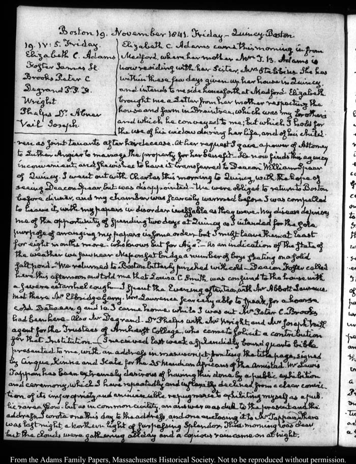 Boston. 19 November 1841. Friday - Quincy Boston.