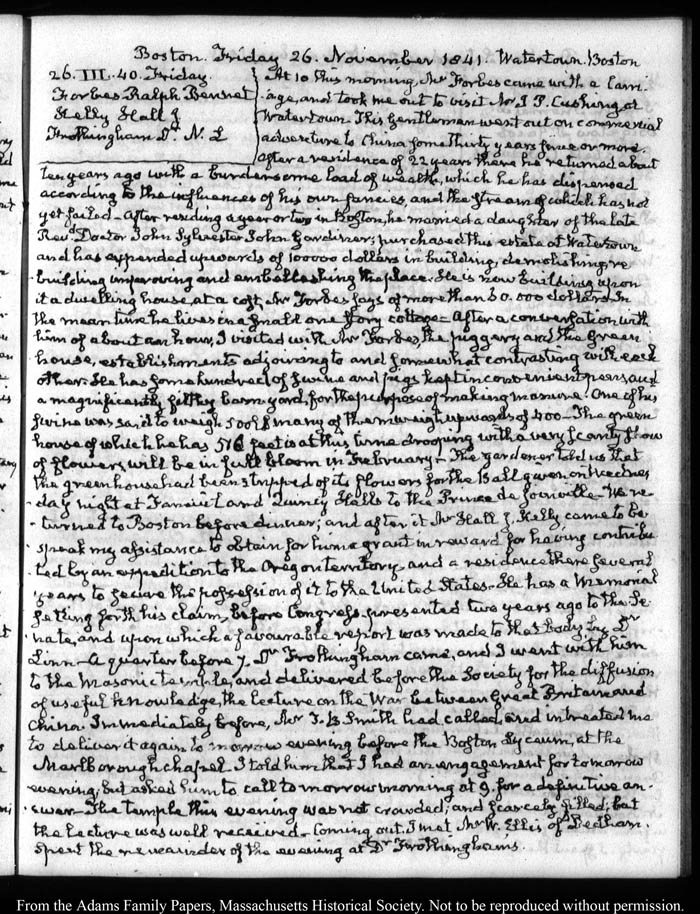Boston. Friday 26 November 1841. Watertown Boston